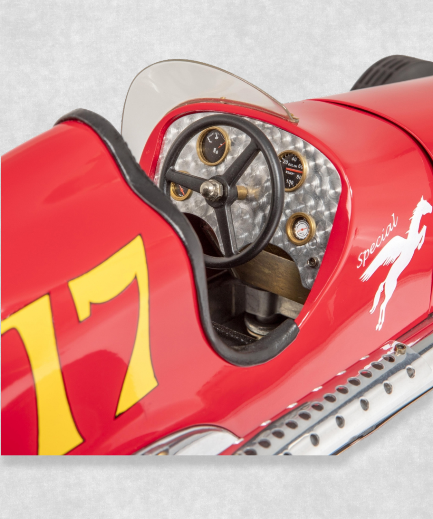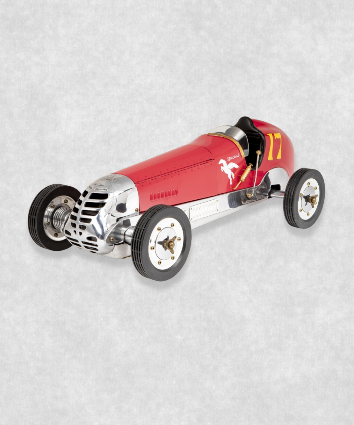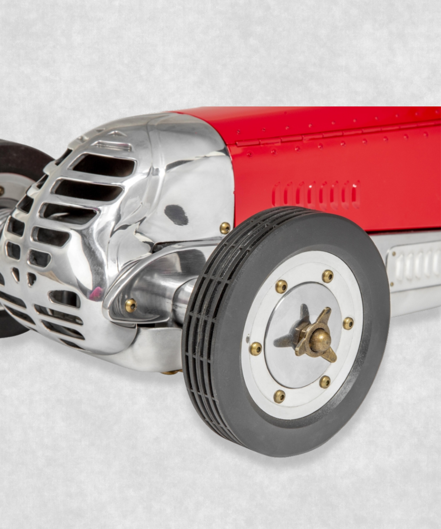 Unser Indy „Spielzeug“-Auto ehrt das Erbe von Korn mit einem detaillierten Armaturenbrett, Gummireifen und einer handpolierten Aluminiumkarosserie.