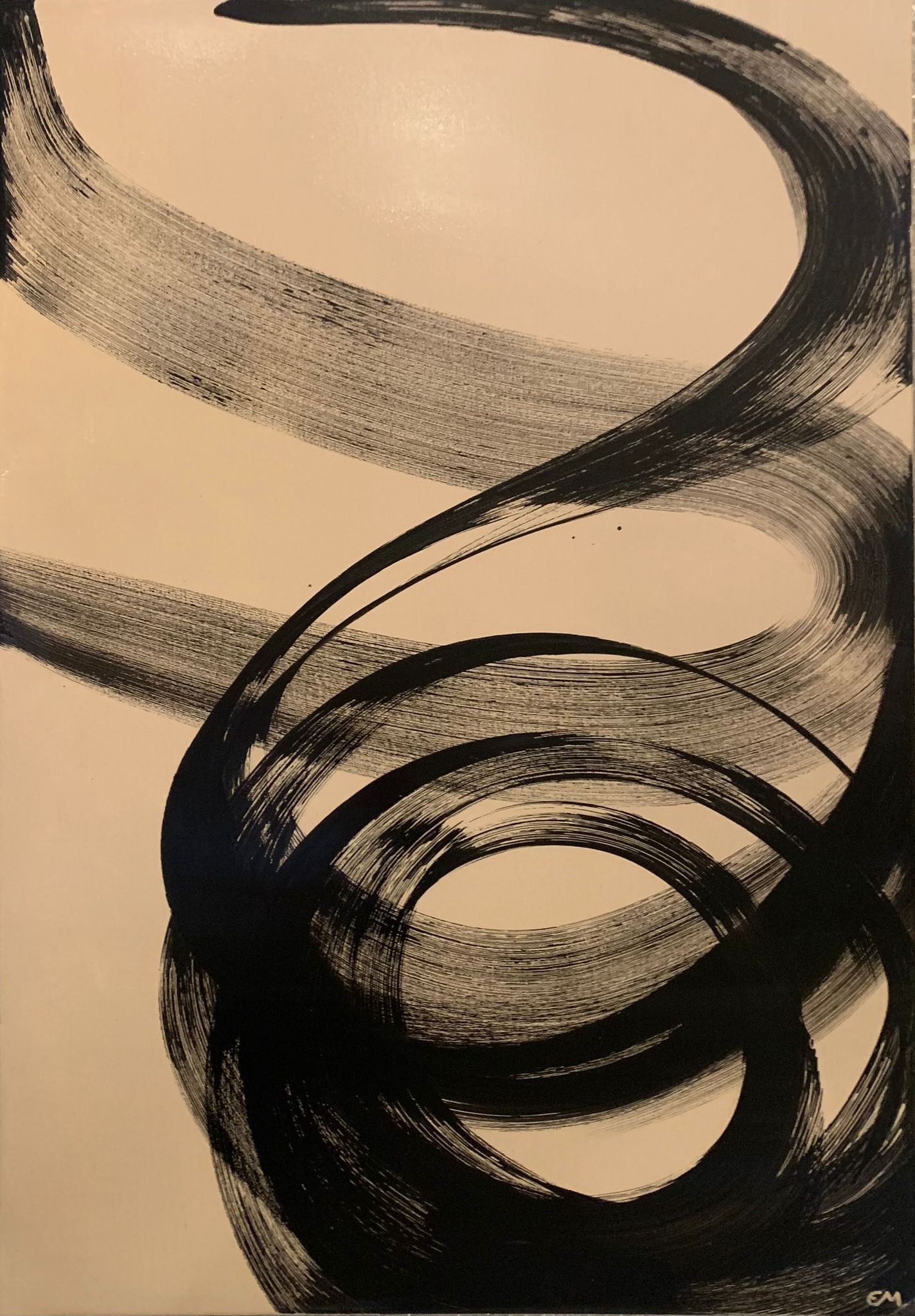 Black figures emerge on a beige background, creating a subtle dialogue between form and surface. Contrasts and visual rhythms invite a sensitive reading, where the shapes balance between tension and harmony, opening a wide spectrum of interpretations.