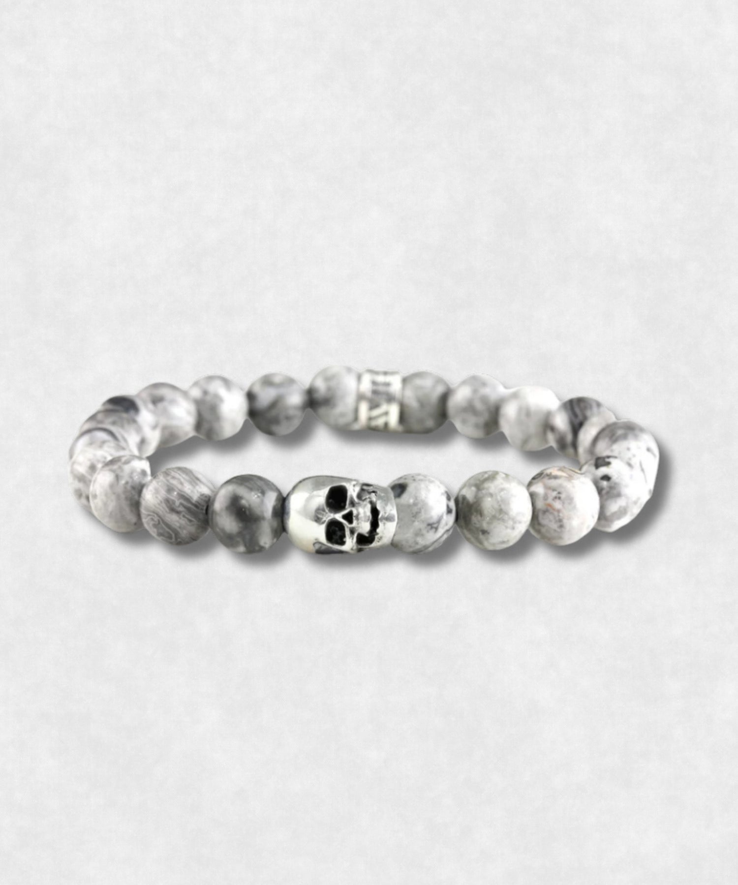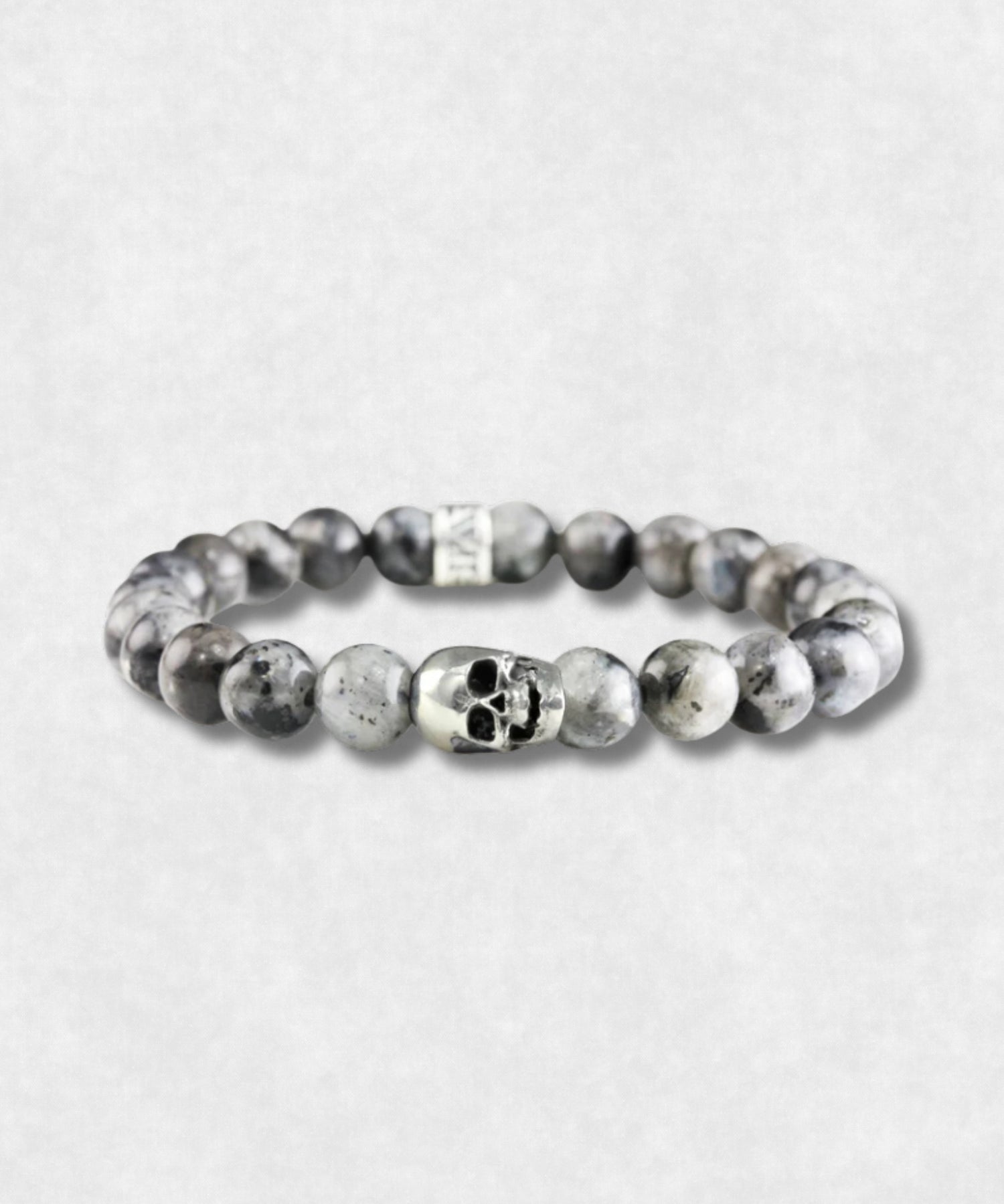 The iconic Davis skull and aged silver spacer evoke the brand’s bold and free spirit, while the high-resistance elastic cord ensures lasting comfort and durability.