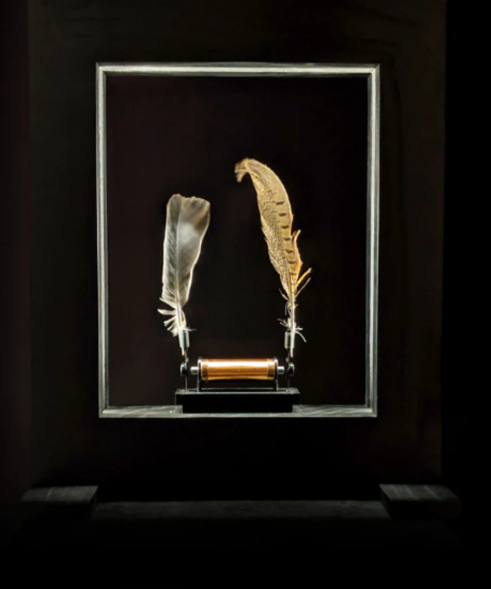 Slow dance is a picture frame that makes real objects appear to move in slow motion. By taking advantage of the limits of human visual perception, this optical illusion sculpture appears to be doing the impossible — right before your eyes. Slow Dance combines technology, science, and art, in order to remind us of the natural mystery, beauty, and wonder that surround us every day.